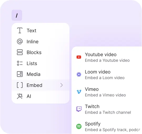 This document is written in Ayanza editor. It comes with dozens of commands available anytime by hitting /.